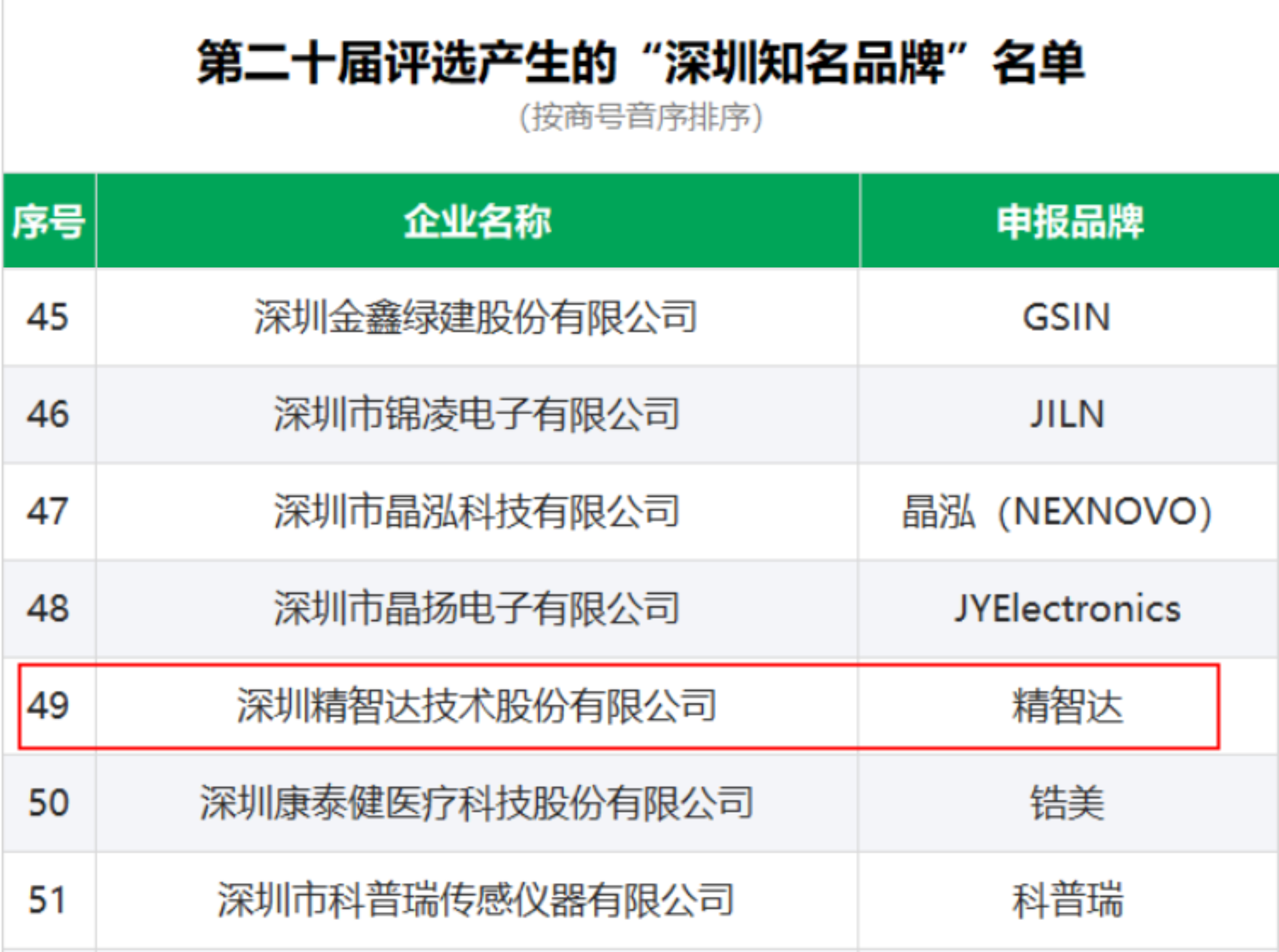 二、第二十屆“深圳知名品牌”評(píng)選結(jié)果: